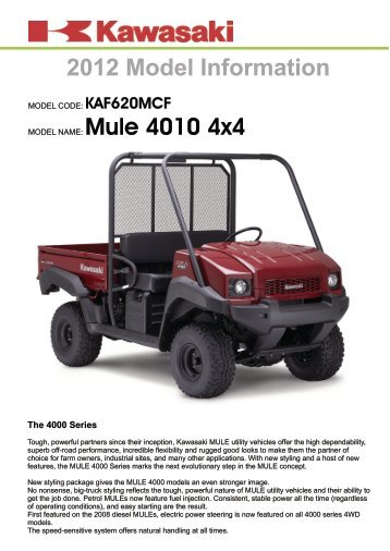 2012 Kawasaki Mule 4010 Diesel 4x4 Kaf950fcf Fuel Injection