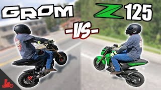 The z has a slight edge once the tach needle reaches the upper limits of its sweep but that really only matters at the track. The grom looks inviting and fun the z on the other hand looks like its ready to go shred some tires up. However the z125 is a capable machine in its own right and is even cheaper by 200 dollars.