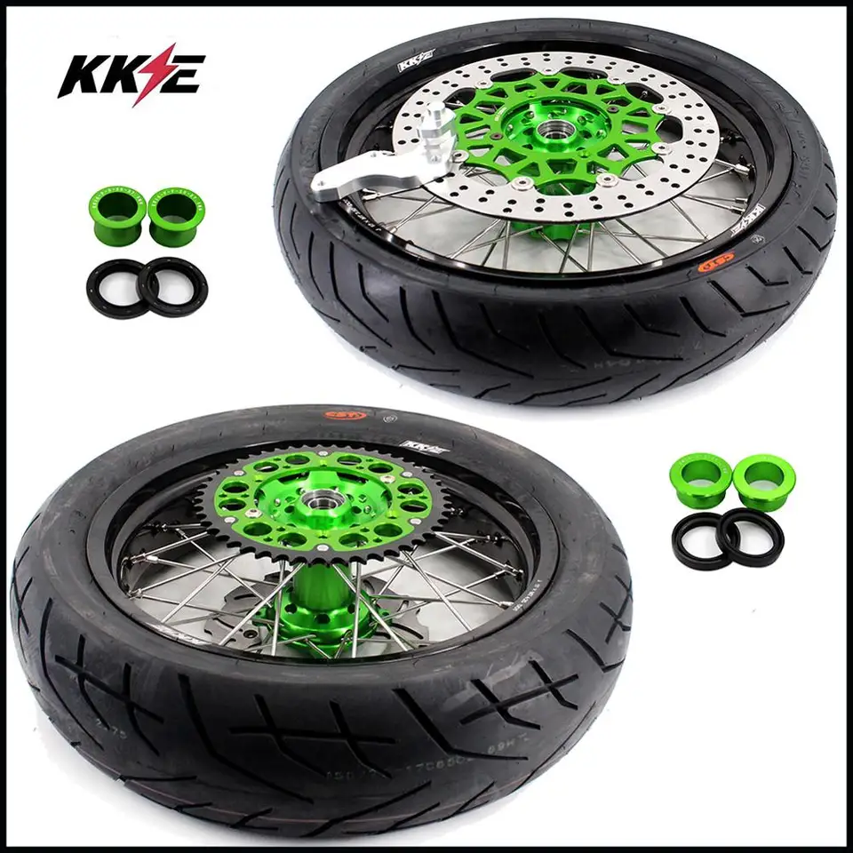 Kke 3 5 5 0 Supermoto Wheels Set For Kawasaki Kx250f Kx450f 06 18 Green 320mm Disc Cst Tires Motorcycle Wheel Rim Motorcycle Rimmotorcycle Rims Wheels Aliexpress