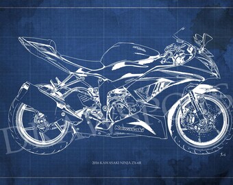 Instant Download Kawasaki Ninja H2r Blueprint Digital Wallpaper
